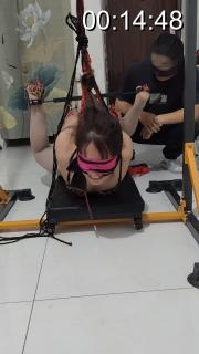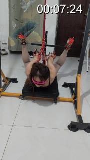 骚奴狗被主人固定在驷马小车上,后脑的狗毛被绳子吊在单杠上无法动弹,直至四肢麻木,非专业人士请勿模仿,定拍交流加qq8723114