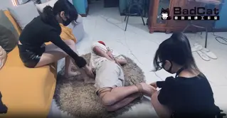 已购50次 片名:【BadCat】【线下1小时 纪实】【咲希X妙妙】【双女线下捆绑男M 滴蜡 打脚心 舔脚 虐足 虐乳】【出售原味】