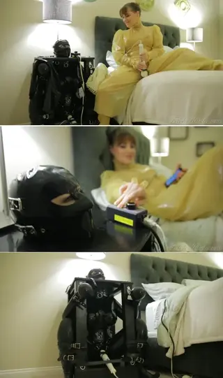 乳胶、紧缚、束缚、拘束、固定、放置、乳胶紧身衣、全包头套、皮带、堵嘴、手套