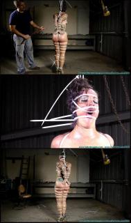 This Clip starts where Part 2 ended... I take my belt off and use it to whip Fayth's well rounded ass. I have another small leather strap and I use it to whip her tits. When I had her over my knee earlier, she was thrashing around quite violently, but now that doesn't seem to be the case... the zipties are keeping her in place and doing their job nicely. Fayth is quite the escape artist as well, but she does not make even the slightest bit of progress. She later told me that that's one of the reason she likes them, because she knows she's fucked. I end up removing her ballgag and make a nice new gag out of zipties, in fact, I ziptie her entire head to an upright ziptie. I clover clamp her nipples. I sometimes like to put them on sideways so that when I weight them down, they twist. When Fayth moans and yelps when I add the ring and padlock, I remember why I like to do that. I leave Fayth now to endure her bondage as I sit back and enjoy the fruits of my labor. I added a little behind the scenes footage of Fayth being released.