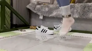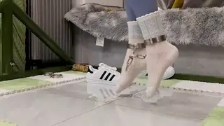薇薇M属性极强,在上期刚被绞刑折磨不久竟又被要求继续绞刑虐待,尽管薇薇的脖子已经被绳子勒的受了伤但作为被拐卖到大山里任由捆绑和虐待的丫鬟可没有任何选择余地。这次薇薇穿的贝壳鞋是她自己平时上学穿的刚买不久,为了更加符合日常着装我让薇薇将服装和白袜拿回去穿了两天还要求薇薇穿着白袜围着操场跑了两圈,然后让薇薇直接穿着瑜伽裤白袜和贝壳鞋过来,薇薇说袜子太薄了这几天脚冻死了...