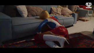 Superheroine G-Girl defeated by her enemy.
