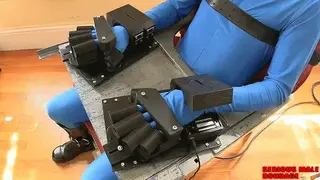 These 3D restraints use a pair of 12-volt DC electromagnets to lock down the wrists once each of the five fingers are fully inserted into their own restraint tubes. Once your fingers are inserted into the five tubes and the wrist clamp is closed and engaged with the electromagnet there is absolutely no escape. This pair of magnet restraints are far more solid and secure than they appear in the video. We mounted the restraints to a bondage chair to play with, but a more secure mounting is required to keep them absolutely stationary. In any case, you'll get the idea. I used a timer box which I had made for some other self-bondage magnet projects to power these hand restraints.
