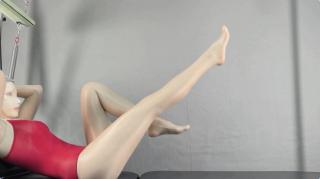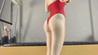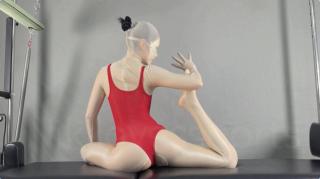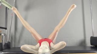 在普拉提床上做拉伸运动,尽情伸展曼妙的躯体,身体被好多层丝滑的衣物包裹着。