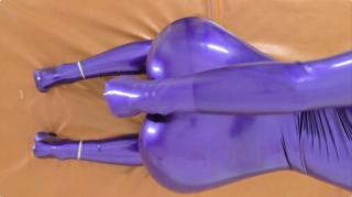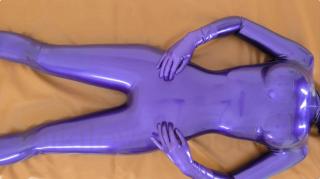 小姐姐穿着紫色全包胶衣,在穿上发骚。
