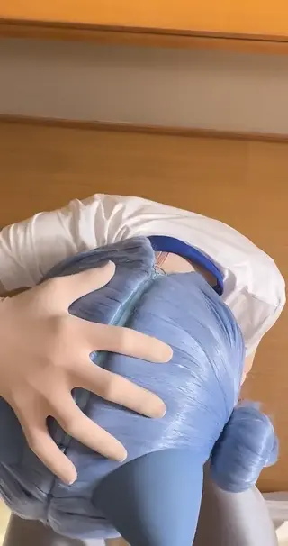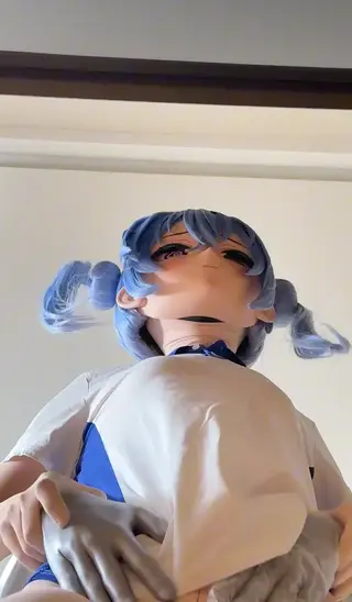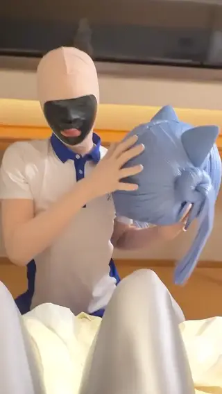 The vegetarian doll is dressed in an open faced flesh colored all inclusive tight fitting kig suit and a micro perforated latex headband, wearing a female little devil cat ear shell, and wearing blue and white gymnastics sportswear and white stockings over the knee. She serves as a photographer in the hotel. The back of the doll was stuffed into a large toy dildo by the photographer, played with and pressed, and then wrapped in shorts. The doll caressed and rubbed the photographer's stick, pointing to its own head shell to signal that the photographer could play the blowjob. Open the zipper of the zipper style head shell to show the super color gas, black and shiny Soy egg head As she moaned and gasped incessantly, it was clear that the doll really liked the stick in front of her ... After bursts of stimulation, the photographer held his stick and patted the doll's Soy egg latex face, turning into a female riding position, during which the doll could not help but gasp ... switched back to the position of the female in the upper position, and the photographer grabbed the doll's stick and controlled it up and down. Finally, there were the kneeling and standing in poses, with the photographer frantically thrusting and forcefully thrusting the doll into it. At this point, the doll could no longer bear the spasms and orgasms of moans and moans But the photographer was not satisfied yet. The doll returned to bed and used her hands and white silk feet to put on stockings for the photographer to complete the handjob... Milk sprayed everywhere ..
