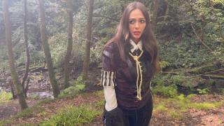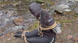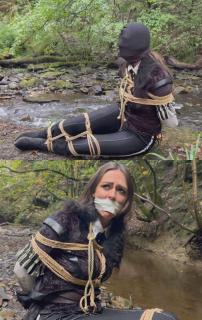 在一处僻静的林间空地,她将一个黑色的头罩罩在我的头上,这个头罩隔音且没有眼孔,让我双目失明、哑口无言,彻底失去了反抗能力。我被捆绑、堵嘴、蒙面,只能在黑暗中挣扎,最终被她拖走,走向我的命运。Dressed as Yennefer from The Witcher, I wander deep into the woods, convinced the witch hunters will never find me. But I stumble across hidden traps and fall into a bundle of ropes that seem to come alive, coiling tightly around my body.