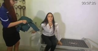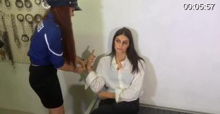 Gaia is stopped by policewoman Laura. It seems that Gaia dint pay too much traffic ticket and for this reason LAura arrests Gaia.Gaia is handcuffed by hinghed handcuffs and they come to police office