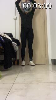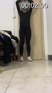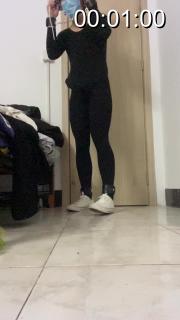 服装:黑色体操服,黑色裤袜,白色低帮帆布鞋