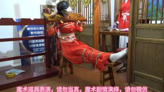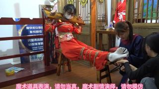 已购3次 片名:兰兰红色秀禾服,一字木枷锁,老虎凳绑脚,挠脚心,简单剧情游戏,数码摄像机横屏高清拍摄版