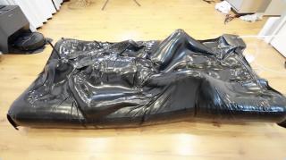 胶衣小奴被塞进真空床真空拘束,被主人用快乐棒玩弄,配合堵呼吸管窒熄助兴,爽的在真空床里直挣扎抽搐。