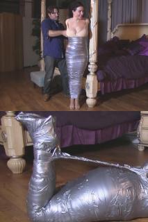 托尼一直想试试“鸡翅木乃伊化”。我当然乐意配合。他一开始就用木塞堵住我的嘴,但后来又取下来,这样他就可以跟我交流胶带的事了。他是我的伴侣,我当时有点儿在他身下,但他并不介意。我们之间有默契……总之,他原本以为只要站着把我“鸡翅化”一下就行了,但哦不,我想继续,躺在地板上,然后被他用胶带绑起来。不幸的是,我们用的是劣质的廉价胶带,他有点儿慌张,觉得我不可能把胳膊绑在身上动不了,所以动作有点儿粗糙。我不喜欢手被绑着。这对我来说是一种奇怪的精神折磨,蒙眼或者任何东西碰到我的鼻子也是……他塞住我的嘴,用胶带缠住我的头。然后他拍了几张照片。Tony had been wanting to try out a chicken wing mummification. I was definitely a willing participant. He immediately has me gag myself with he wooden gag at first but later removes it so he can communicate with me about the tape job. He is my significant other and I was topping him from the bottom a bit, but he doesn’t mind it. We have an understanding…Anyway, he believed he would just be chicken winging me while standing all nice but oh no I want to continue on and lay down on the floor and then get hogtaped. Unfortunately we were using horrible cheap tape and he was a little panicked and rushing thinking I couldn’t keep my arms taped to my body like that with no movement in my hands whatsoever so things got extra sloppy. I don’t enjoy having my hands taped. It is a weird mindfuck for me, blindfolds as well actually or anything touching my nose…He stuffs my mouth and wraps tape around my head. Then he snaps some photos.
