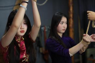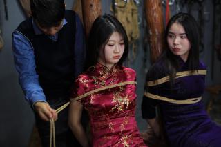 已购12次 片名:【老虎凳上的旗袍女孩】漂亮女孩苏灵柳嫣被绑住双手吊起老虎凳上加转脱鞋打脚心剧照445张+视频39分钟