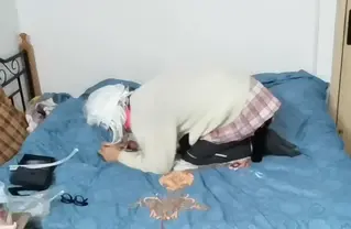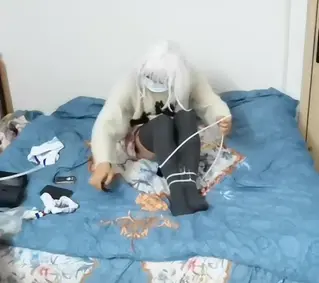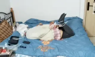 内容:穿好服装和戴好所有道具用扎带把双腿紧紧的固定住,打开所有玩具开始享受,结果很快就缴械投降了~