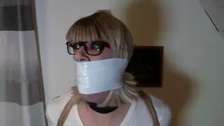 It's a quiet normal day for Chrissina, a sexy and voluptous gurl-next-door. The busty gurl spends her day chilling on the couch with tv and snacks, only dressed with a tight t-shirt and a string-panty and enjoys her workless life. But her peace is quickly over as two men show up at her frontdoor and offers her that they where sended to get money from her... depts she still owes a creditor. Chrissina tries to be not impressed and promises them to pay as soon as she has the money but the two brutes don't have planed to go with empty hands and so they make short process with the big boobed Bimbo. Later, while the men search in Chrissina's flat for worthful stuff, the poor damsel spend her time properly bound and gagged in a backroom! She desperate try to find a way out of her harsh restriction but has no chance to get rid of the amounts of ropes she's tangled in neither to remove the massive tape-wrap-gag over her mouth. As the brutes return to her, they make sure that they'll return later for the rest of the owes and as clear warning they pack-up the curvy Bimbo into a tight hogtie on a table and covers her head with a stockinghood and adittional tape before they leave their victim merciless captured in her flat!