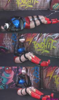 But for now, UltraGirl was at the mercy of her heartless foe, a helpless, bound, and gagged prisoner, awaiting whatever cruel fate the henchman had in store for her. Would her incredible will to survive and protect her city be enough to help her escape this predicament, or would she succumb to the villain's darkest desires? Only time would tell.