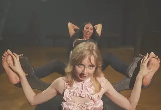Mandy explores the giant soles with her fingers, teasing along the arches, tracing the pads of Adriana's toes, and finding her most sensitive spots. Adriana reacts with real laughter and light giggles as Mandy continues her playful tickling routine.