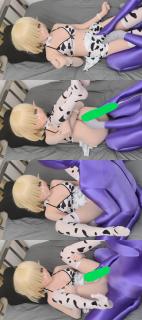Lying in bed, I was already feeling unbearably hungry and thirsty, and I opened M's legs, waiting for the zentai owner to play with me.