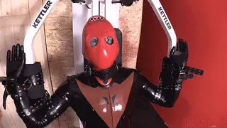 We were traveling as a group of three: SFDom and BackStreet2001 on Recon, and myself. Once we got a tour of the facility, we were ready to shoot some bondage videos. First up was for use was the gym workout machine. Our friend BackStreet2001 had brought with him a cool heavy rubber hood from RubbersFinest in Germany. BackStreet actually works at RubbersFinest, so naturally he owns a lot of cool gear. This particular hood has internal tubes that run from the nose to the top of the hood, so your inhale and exhale air passes through the four holes at the top. These holes, along with the transparent lenses, make the hood look very alien. In addition, the hood looks really great when combined with the gym machine. And, as you will see in the video, the hood's rubber is so thick you can barely understand the person inside when they talk.