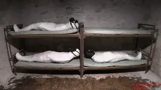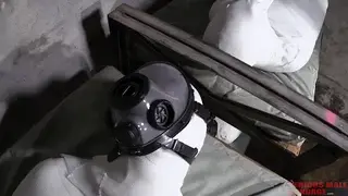 【中文绷带石膏木乃伊】四个木乃伊都戴着防毒面具整整齐齐的排列在片场!For those guys who are interested in full body fiberglass casting, you should watch this video. This was shot a few years ago when I was at Bind's place in Iowa. We were shooting his Appleville movie series, and on this day we were doing fiberglass casting for some shots he needed. The shot was of four people completely casted from head to foot. In the center image above you can see the four casts. Three of the casts had people inside, the fourth cast in the lower left is a shell with nobody inside. This cast was made around Bind himself the prior year. We cut the cast off and used it in this shot.