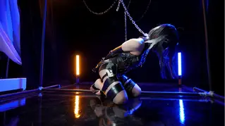 【拘束屋】第六期,体验皮革拘束的羽毛笔,感谢VVA的羽毛笔Cos出镜。这次没有用拘束架了,试一试新玩具。