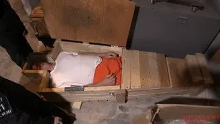 Another hot scene is this video is when we clamped Bind in the 'Split V Chair' with his head in a metal helmet suspended from overhead with a chain. He was totally fucked, colpletely unable to escape. I hope you guys like watching these video clips. Sometimes I need to pinch myself to make sure that all the bondage play we do at Bind's place is really happening. I've never had a better time in all my years of running this website. NOTE - the black bungee straps used with the guy spread-eagled on the floor are from