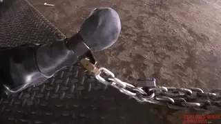 【中文】被铺在水泥地板上真的很令人兴奋,而且吊环螺栓又大又结实,所以当卸扣链被锁在螺栓上时,它为主体创造了一种非常美妙的感觉。在这段视频中,有很多人趴在混凝土地板上,包括我自己,戴着厚厚的橡胶和防毒面具。这就像一种精神体验,尤其是当我在黑暗中呆了几个小时,周围没有人的时候。另一个热门场景,当时我们用链子把Bind夹在“Split V Chair”上,他的头戴在头顶悬挂的金属头盔里。他完全完蛋了,完全无法逃脱。This is the final installment of 'Fun At Bind's Place' which continues to show the fun we had during our two week stay. As we said in the video, one of the most popular rooms at Bind's place in the basement with the big steel eye bolts anchored in the concrete floor. I installed these bolts myself. These four bolts are setup for spread-eagle bondage, and everyone who visit's Bind's place has to try spread-eagle at least once. It's really exciting to be spread on the cement floor, and the eye bolts are big and solid, so when the shackle chains are locked to the bolts it creates a really wonderful feeling for the subject. There are a number of guys spread-eagled on the concrete floor in this video, including myself in heavy rubber and gas-mask. It was like a spiritual experience, especially when I'm left for hours in the dark with nobody around.