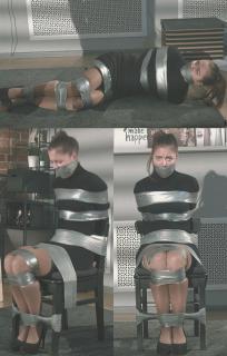 Deciding she is far too noisy, he stuffs her mouth with cloth and wraps tape tightly over her head, then drags her onto a chair and tapes her securely to it. Once Leya is completely immobilized, the masked man takes the laptop and leaves, abandoning the tightly bound investigator alone in her own home. Enjoy!