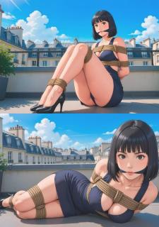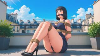 看我那美艳动人的动漫风格亚洲妻子,在巴黎街头高处,彻底沉沦于绳索束缚的快感之中。在我们阳光普照的屋顶露台上,湛蓝的天空下,巴黎标志性的屋顶环绕四周,她任由我用粗绳将她的手腕、手臂和双腿捆绑起来,绳子完美地勾勒出她曼妙的曲线。