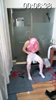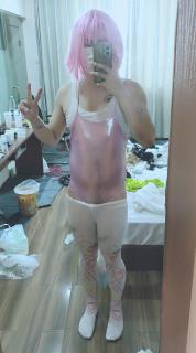 服装:粉色泳衣,洛丽塔白裤袜