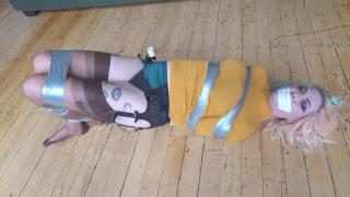 艾姆伯穿着一件漂亮的芥末黄高领毛衣和复古长袜,在活动室里摆着造型。真是赏心悦目。Wearing a lovely mustard turtleneck sweater and vintage stockings, Amber is tape up in the dayroom. Lovely set.
