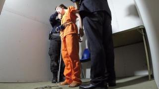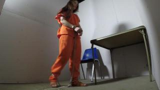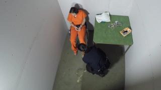 locked in her cell still in transport restraints when the guard comes in and lets her out