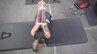 他只给我一点喘息的空间,就把我拉回那种节奏——徘徊在解脱与屈服之间——直到他最终解开我的束缚,让我像个乖乖女一样彻底崩溃。Martin wasted no time bending me over the table and securing me face down. With my elbows bound, roped tight between my legs and spread wide, he summoned tears with steady strokes of the flogger, reminding me we’d only just begun.