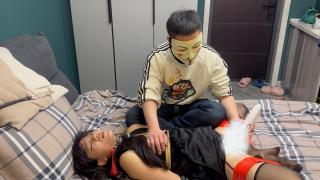 【束人映像】原创 【首次强高体验】 妹妹含情脉脉地看着我 强烈的刺激骨头口塞已被咬变 形后手缚固定床上不停换各种体位强高
