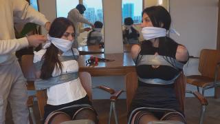 But it wasn't over! Without any explanation, the man returned and added another thick OTM gag on top! Now their moans were truly muffled, and it was impossible for the two secretaries to call for help or free themselves! They struggled and moaned "MMMMmmhhhhfffffppphhhmmmm!!!" for a long time, tied and gagged to the chair.
