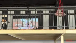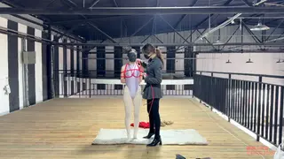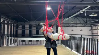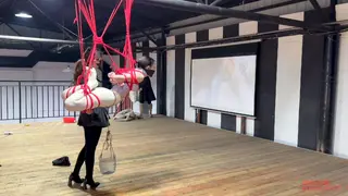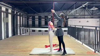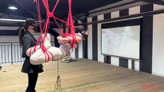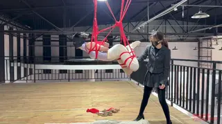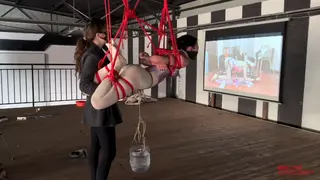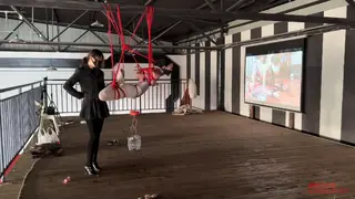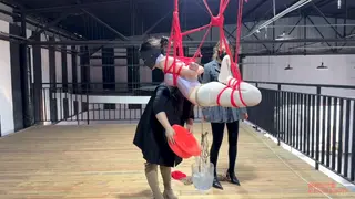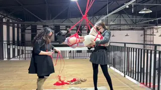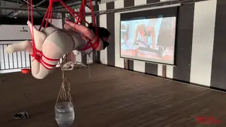 二楼的平台上,瑾初整张脸都被绷带缠绕包裹,她看不到,也不能说话,任由水儿把她五花分腿吊在柱子上,媚娘在她的腰间挂了一只桶,倒满水,瑾初只觉腰部水桶的拉力狠狠下坠,仿佛要将她的身体割裂开来,水儿用zd棒在她全身游走,失去了视觉身体变得格外敏感,她开始呻吟出声,电击导管带着电流在她x部炸开,再到腹部,甚至是秘密花园,痛感和快感交替蔓延,忽然又听到别的声音,还没来得及疑惑,只听水儿开口“听听,声音熟悉吗?”媚娘撤下了瑾初眼睛的绷带,映入眼帘的是一张巨幕,上面播放的视频,里面趴在k9架上被调教着的“母狗”竟然是她自己,zd棒在身下持续震动,高c来了又去,瑾初仅仅夹着双腿,在空中扭捏着,视频里的她娇喘,现实中的她也呻吟,绷带之下她早已羞的面红耳赤。水儿又在耳边补充道“比比看是里面的母狗骚,还是外面的骚?好好欣赏吧,等电影结束了,再来看你”说完水儿放下zd棒就走了,在楼下抬头看,还隐约看得到被迫看自己小电影的瑾初呢..