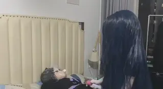 被坏人按倒在床上,双手也被绑在身后,还被套上了塑料袋