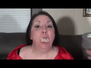 Gina makes a bet with Matt that no matter how much tape he uses to restrain her, she will still be able to free herself. She is gagged with a huge pair of panties and more tape is wrapped around her head to hold in the gag. Can she escape? You will have to watch and find out.