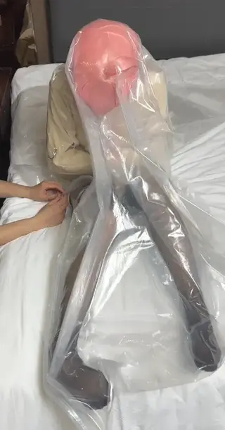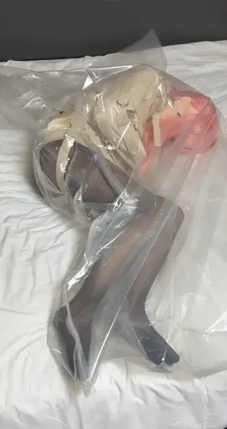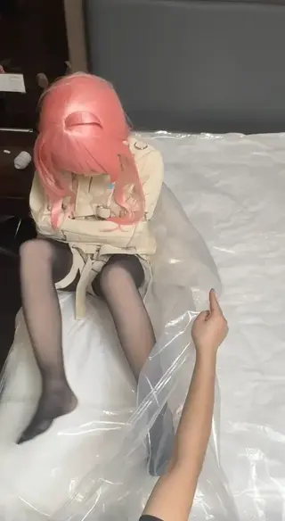 素体娃娃身着全包紧身衣并头套来自《别当哥哥了!》的女主角绪山真寻头壳,外搭透肉黑丝袜和地雷妹服装,在酒店被同伴要求进入真空袋玩呼吸控制play...同伴的小手很不老实,拿出震动棒疯狂刺激玩偶直到再也没有新鲜氧气求饶放出...然而并没有结束,同伴们又命令人偶换上经典拘束衣继续玩呼控play...粉毛娃娃躺下进入真空袋,唯一能活动的双脚却因为压强紧贴塑料袋也只能徒劳地挣扎乱蹬,伴随着空气不断减少再次到达极限含糊不清地说着“我不行了...”才被解开塑料袋。同伴们还是意犹未尽,又命令人形玩偶坐着进入真空袋再来一次呼控play。在娃娃到达极限时短暂解开,没过多久继续抽走空气,反复多次的折磨后娃娃瘫软在床不省人事...