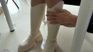 女侦探灵儿回到家喝下了那杯水 晕在了桌子上 变态出来玩弄长靴 脱掉靴子 来了一场华丽脱衣秀 之后将其捆绑 在椅子上 玩弄腿足 撕破丝袜 挠脚