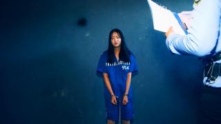 经过授权反绑,张小丽在被反吊一夜后终于熬不求饶,表示原因交代犯罪的经过,随后张小丽被戴上连体镣铐押往刑讯室交代犯罪经过。签字画押完以后押往囚室等待宣判。宣判的日子到来,张小丽被押往宣判室,由于张小丽犯罪情节特别恶劣被判处死刑立即执行,宣判完以后张小丽被押往戒具室砸上死铐。砸完死铐后张小丽被押往死囚牢等待执行,张小丽戴着反铐睡觉特别难受。执行的日子到来,张小丽被卸下反铐然后五花大绑,在对张小丽验明正身后押往刑场执行枪决。另外招聘模特,喜欢做模特拍片可以联系我们,QQ342642509