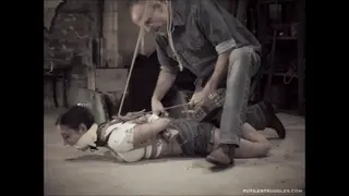 Trixie endures her hogtie for a while, before I release her. She stays on her stomach and I leave her arms bound behind her back. Her legs are spread, as I strap her ass and legs. After I'm done, I completely untie her and I order her to her knees. Severe spanking, rope tied, submissive, tears, legs spread, screaming, boots, short jean, futilestruggles, cowgirl, cleave gagged, punishment, forced position, maledom