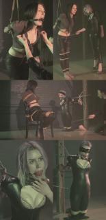 她的助手终于忍无可忍——反过来控制了阿斯特丽德。他把她按在柱子上跪下,双手反绑在背后,并稍微抬起,让她被牢牢束缚,动弹不得。与此同时,他也绑住了凯特,把她绑在椅子上,让她只能眼睁睁地看着接下来发生的一切。