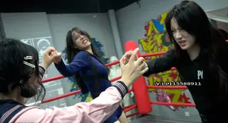 两个妹子正在擂台上练习格斗,没想到来了一位不速之客JK妹,她在擂台下看了好一会,正当台上的两人要分出胜负的时候,JK妹打断他们嘲讽他们太菜了,让她们一起上,自己陪他们玩玩......客服企鹅QQ:1017320781