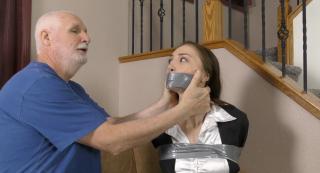 Detective Michelle is having a rough morning and forgot her phone & weapon in the car but decides to interview a potential witness anyway. When she gets a bad vibe, she tries to make a smooth exit but is grabbed, duct taped, and tossed on the chaise by her “witness” who was actually a burglar who was already in the house! Struggling in her jacket, blouse, pencil skirt, pantyhose, & high heels, Detective Jennings realizes she needs to escape before the criminal returns.