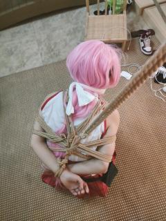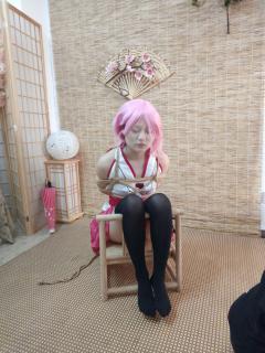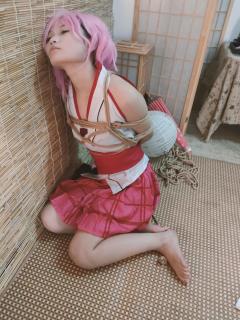 已购6次 片名:原神八重COS服+超紧紧缚+跪缚+丝袜蒙眼+白丝堵嘴+黑丝诱惑