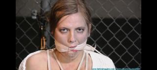 This clip starts where Part 1 ended... Candor waits nervously for a bit before I return. I untie the rope around her neck and tie it into her hair. I cleave gag her with an ace bandage before I start binding her