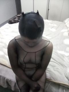 今晚在家穿搭,黑色包手包头的透明连身丝袜,穿上后老规矩把穿入口缝起,实现完全包裹,看电视直到困后然后睡觉。
