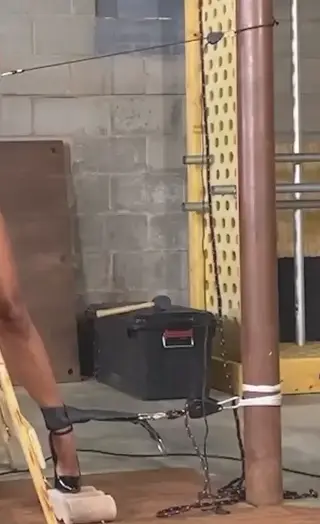 佐娜和德莉亚站在地下室里。两人都穿着长款T恤和内裤。佐娜腋下夹着一卷绳子,正在看一些文件。德莉亚则在揉搓手腕。她们显然刚刚结束了一场捆绑游戏。Zonah and Drea are standing in basement. Both are dressed in a long t-shirt and panties. Zonah is holding coiled rope under her arm and is looking at some papers. Drea is rubbing her wrists. They clearly just finished a bondage session.
