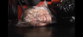 妹子身着胶衣被拘束手脚,头上还被套了透明塑料袋控制呼吸